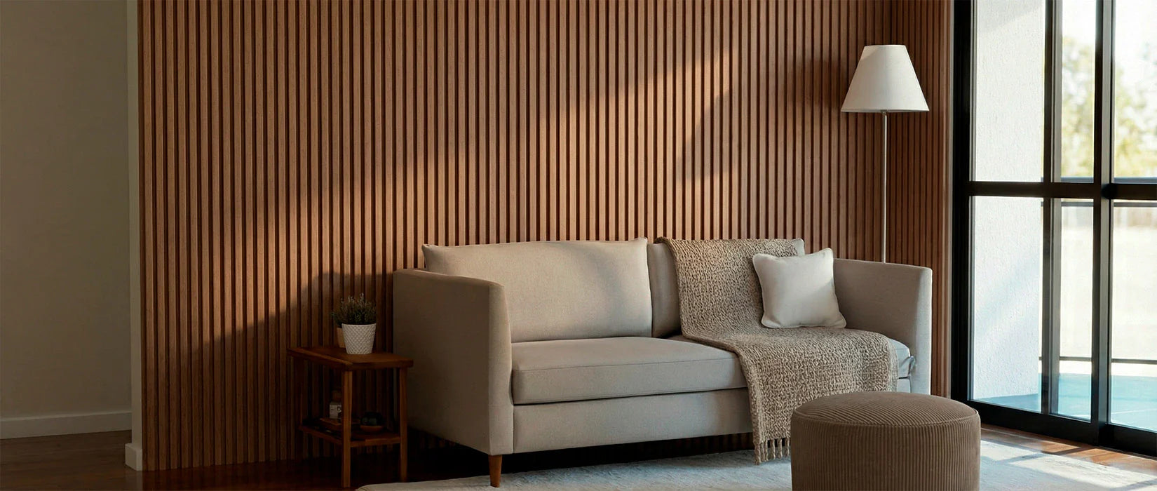 Each slat is manufactured with an MDF base, ensuring durability and strength, providing a sophisticated and versatile finish for any environment.
